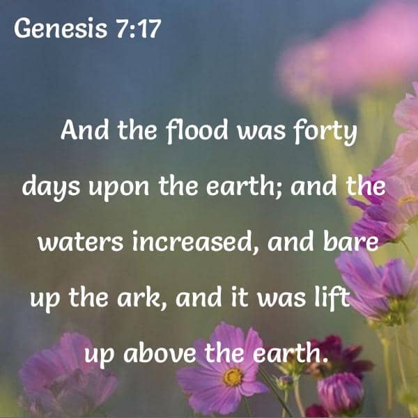 And the flood was forty days upon the earth; and the waters increased, and bare up the ark, and it was lift up above the earth.
