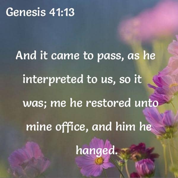 And it came to pass, as he interpreted to us, so it was; me he restored unto mine office, and him he hanged.